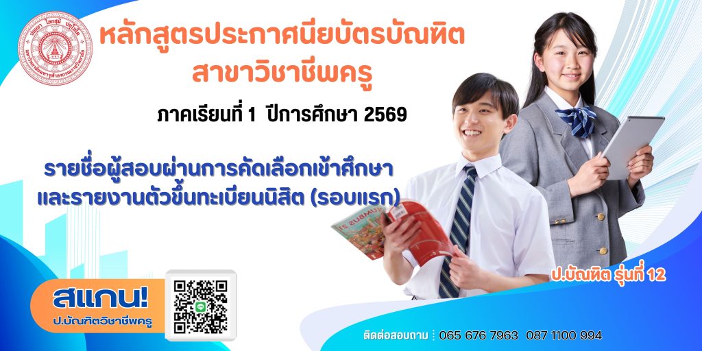 เปิดรับสมัครแล้ว! หลักสูตร ป.บัณฑิต วิชาชีพครู รุ่นที่ 12 ปีการศึกษา 2569