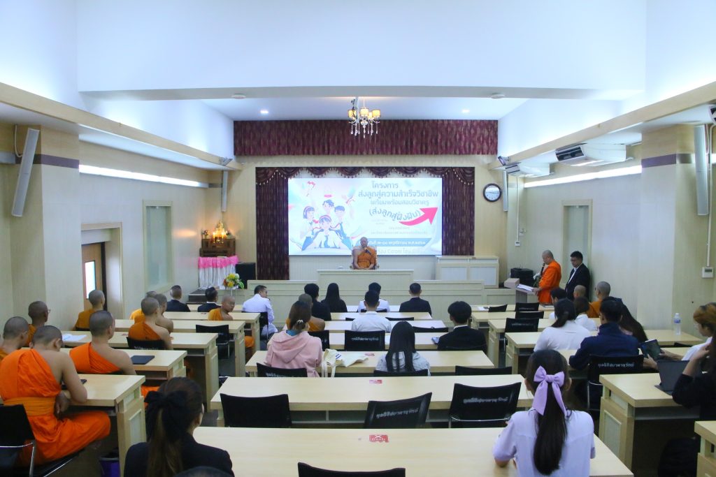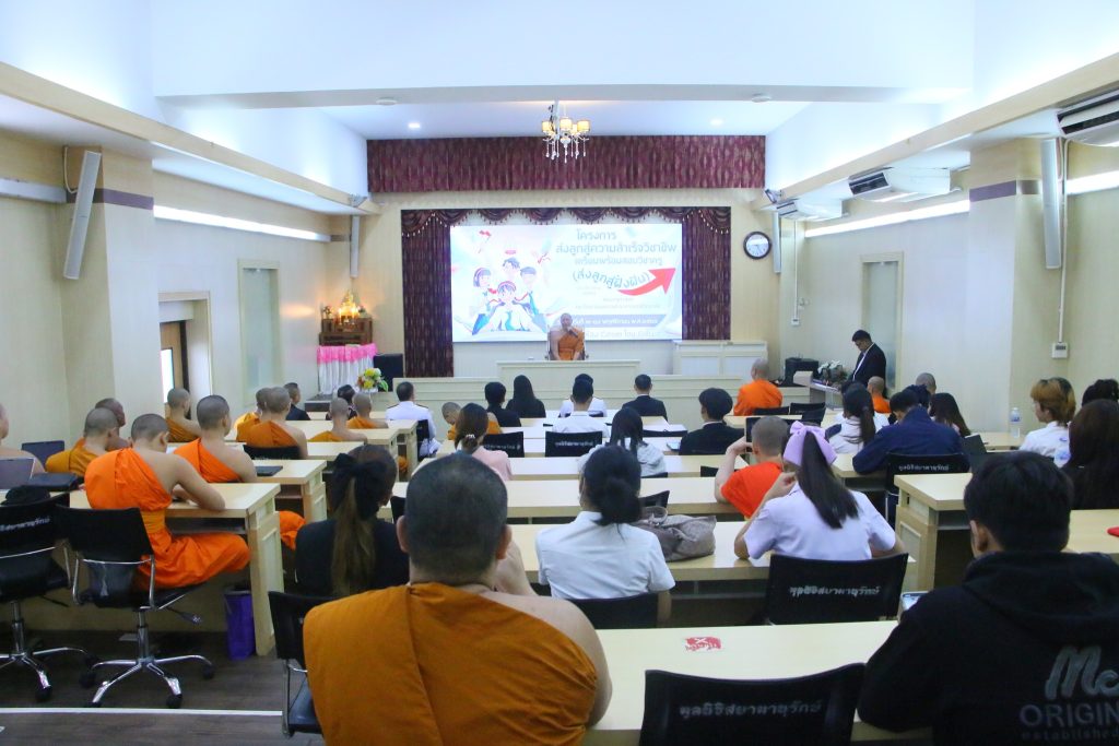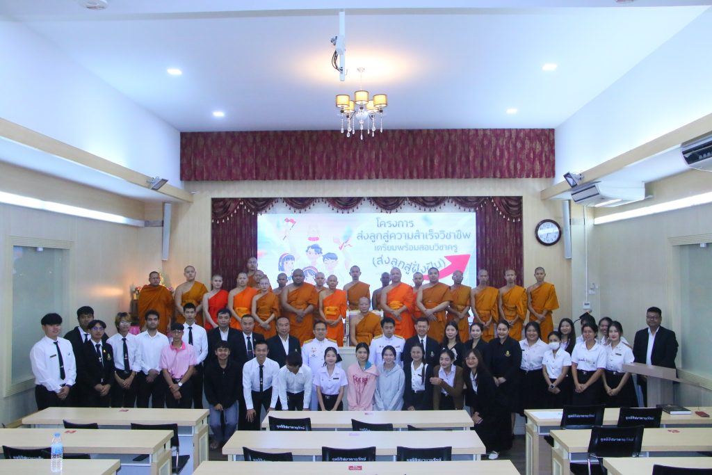 นิสิตชั้นปีที่ ๒-๔ คณะครุศาสตร์ มจร (ส่วนกลาง) วิทยาเขต วิทยาลัยสงฆ์ และผู้สนใจเข้าร่วมโครงการ”ส่งลูกสู่ฝั่งฝัน” เตรียมความพร้อมสอบใบประกอบวิชาชีพครู มาตรฐานความรู้และประสบการณ์วิชาชีพ