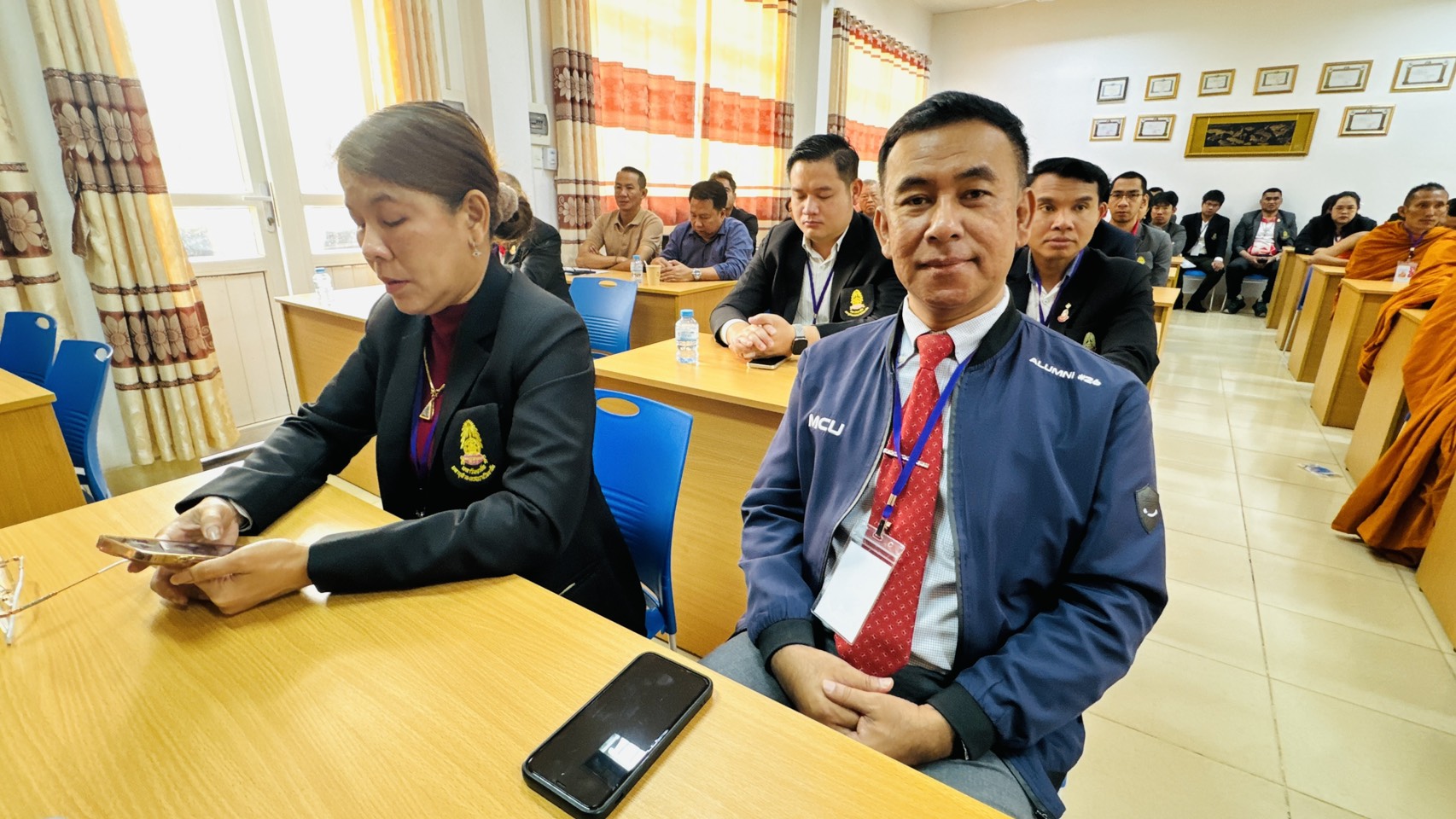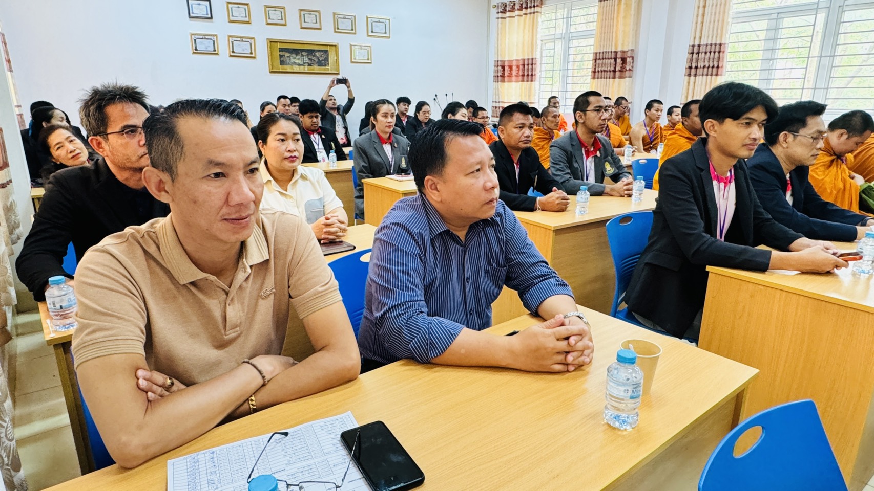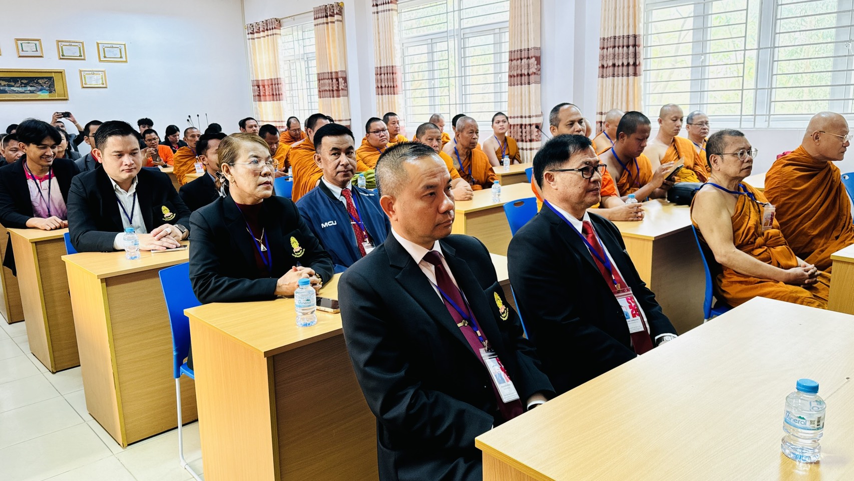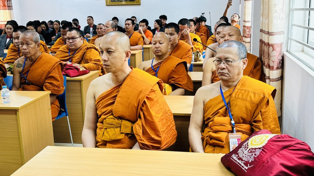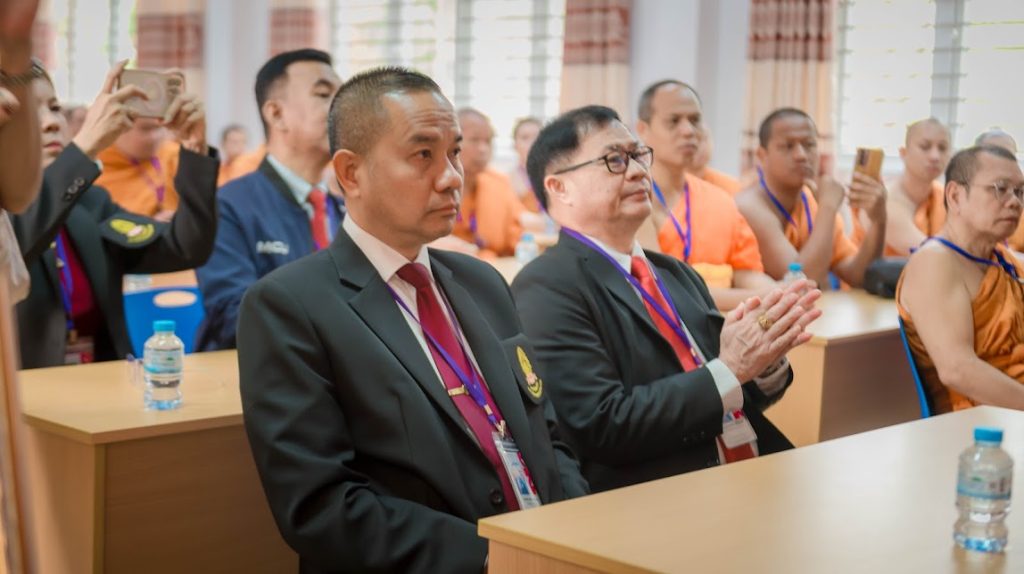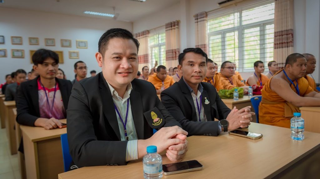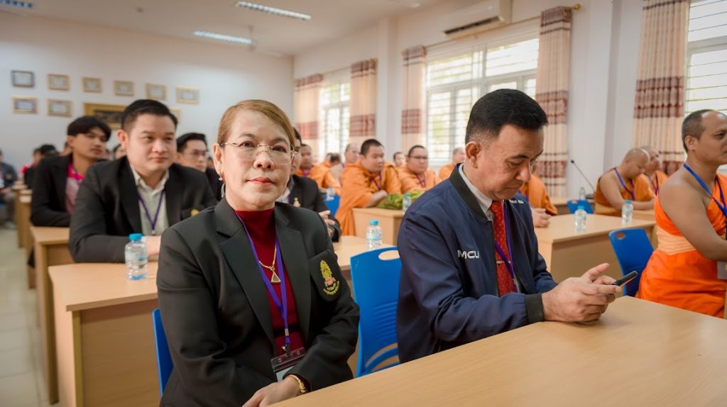 รศ.ดร.สมชัย ศรีนอก ผู้อำนวยการหลักสูตรบัณฑิตศึกษา สาขาวิชาการสอนสังคมศึกษา ภาควิชาหลักสูตรและการสอน คณะครุศาสตร์ มหาวิทยาลัยมหาจุฬาลงกรณราชวิทยาลัย พร้อมคณาจารย์ นิสิต ป.โท 10, นิสิต ป.โท 11, นิสิต ป.เอก รุ่น 5, และ ป.เอก รุ่น 6