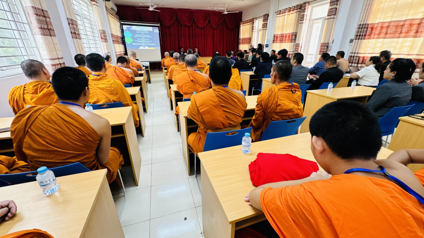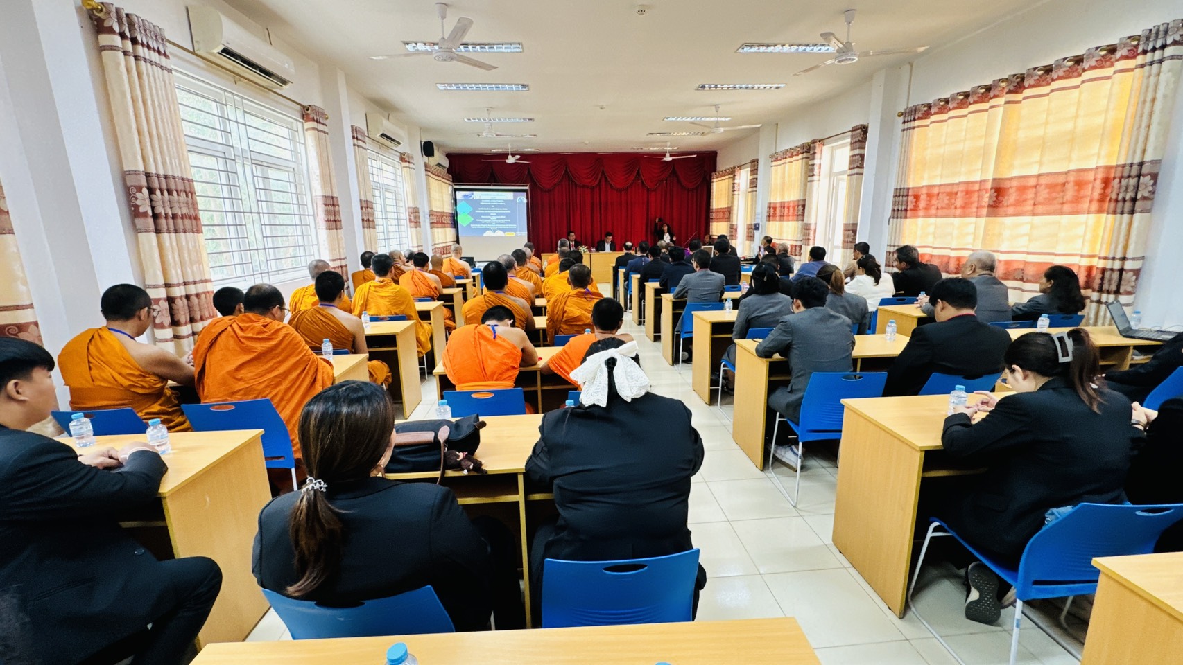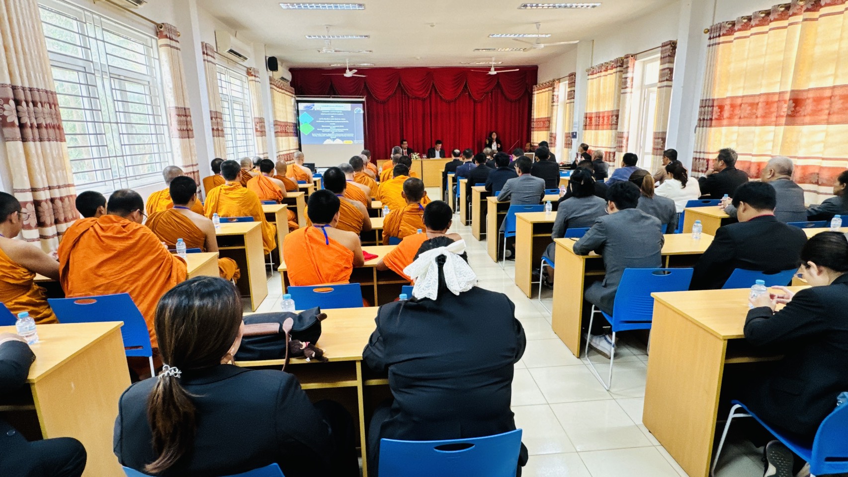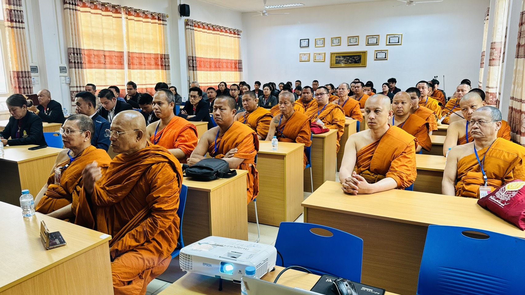 รศ.ดร.สมชัย ศรีนอก ผู้อำนวยการหลักสูตรบัณฑิตศึกษา สาขาวิชาการสอนสังคมศึกษา ภาควิชาหลักสูตรและการสอน คณะครุศาสตร์ มหาวิทยาลัยมหาจุฬาลงกรณราชวิทยาลัย พร้อมคณาจารย์ นิสิต ป.โท 10, นิสิต ป.โท 11, นิสิต ป.เอก รุ่น 5, และ ป.เอก รุ่น 6