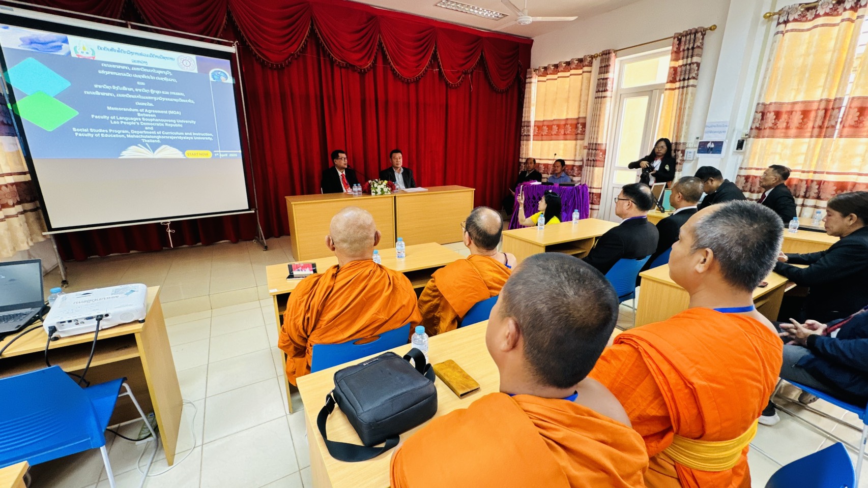 ในโครงการนี้ หลักสูตรได้ทำพิธีลงนามข้อตกลงความร่วมมือทางวิชาการ (MOA) ระหว่างหลักสูตรบัณฑิตศึกษา สาขาวิชาการสอนสังคมศึกษา คณะครุศาสตร์ มหาวิทยาลัยมหาจุฬาลงกรณราชวิทยาลัย กับ คณะภาษาศาสตร์ มหาวิทยาลัยสุภานุวงศ์ สปป.ลาว