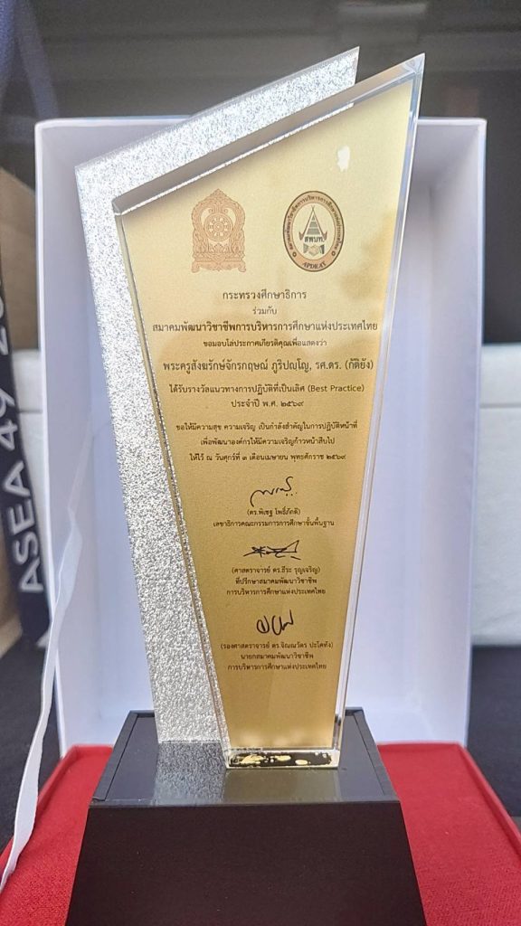 ทั้งนี้ได้มอบโล่ประกาศเกียรติคุณรางวัลแนวทางการปฏิบัติที่เป็นเลิศ (Best practice) ประจำปี พ.ศ. ๒๕๖๙